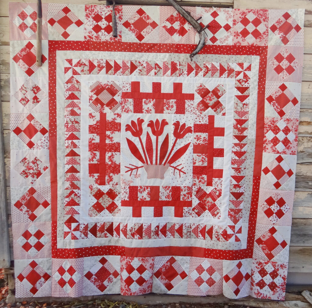 Starting in February, each month you get a new quilt block pattern that finishes into a beautiful quilt in December.